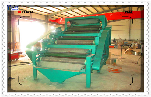 1、錳礦磁選機(jī)皮帶選用超強(qiáng)磁輥計(jì)劃,兩道分選,適用于分選磁性較弱的礦藏,如褐鐵礦、錳礦,分選今后可進(jìn)步10到30個(gè)檔次。